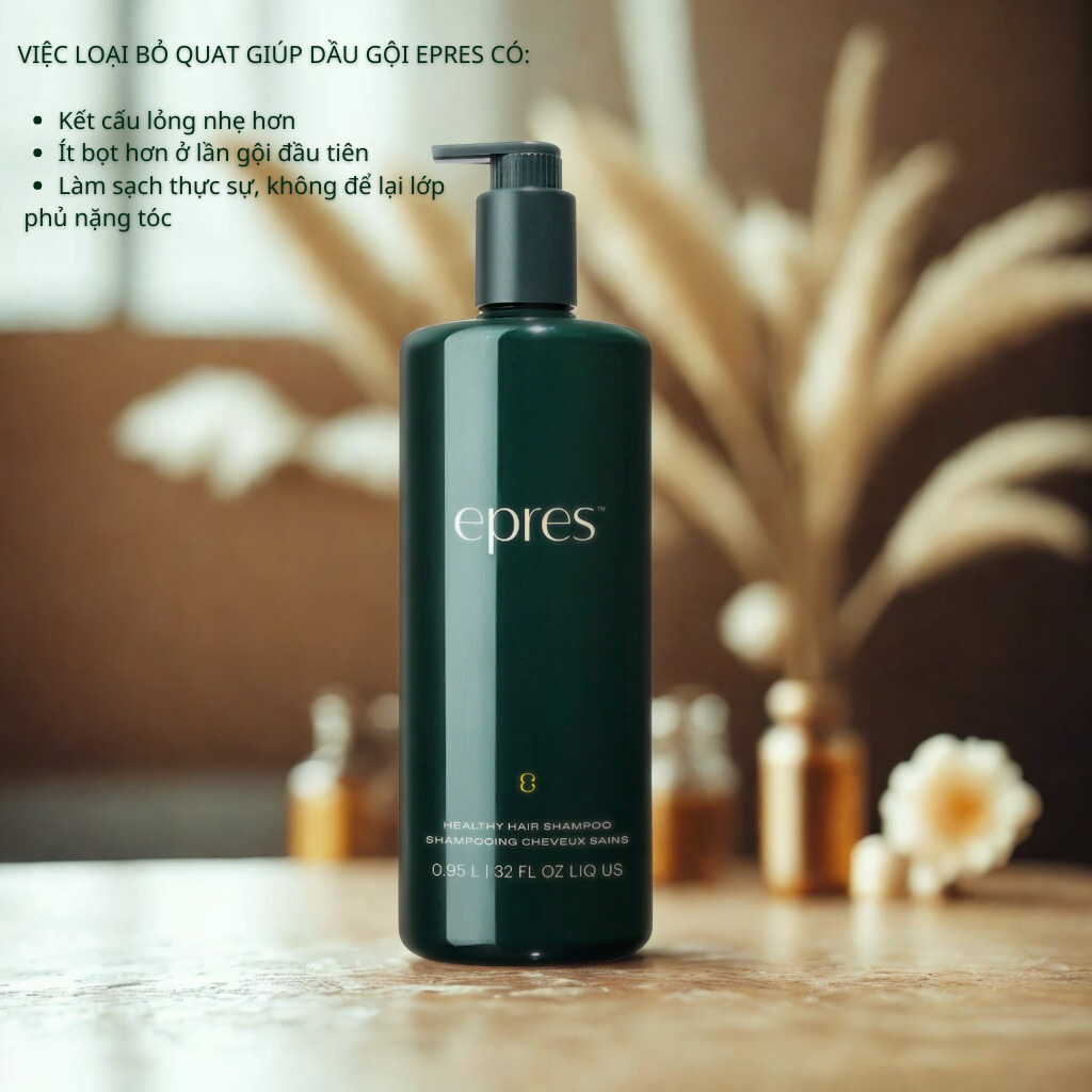 - Công thức không chứa Quat (quaternary amines) giúp làm sạch thực sự, không tạo lớp phủ nặng tóc, hạn chế tích tụ lâu dài và thân thiện với môi trường.