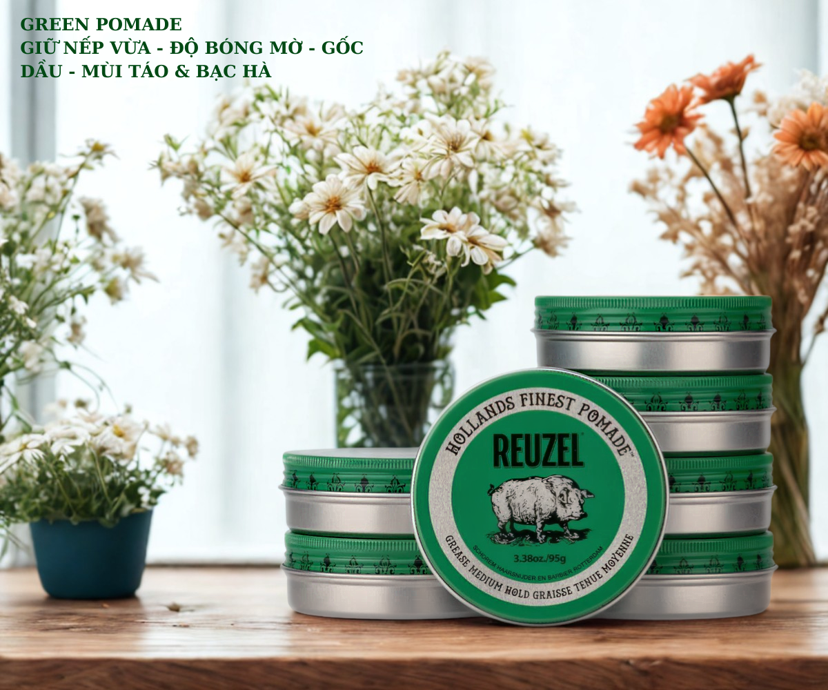 SÁP REUZEL GREEN POMADE GREASE GIỮ NẾP TÓC TRUNG BÌNH CÓ ĐỘ BÓNG VỪA 95G